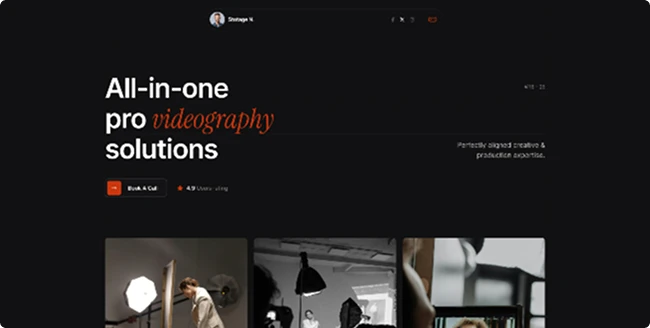 Import a complete property website with one click, or combine 1000+ section blocks to craft a unique showcase for your photography & videography portfolio.